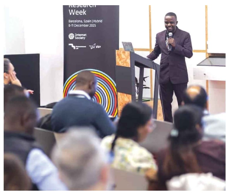 Joseph Bishi representing the country at the prestigious Pulse Research Week, hosted by the Internet Society, UNICEF, and the International Telecommunication Uniondescription.
